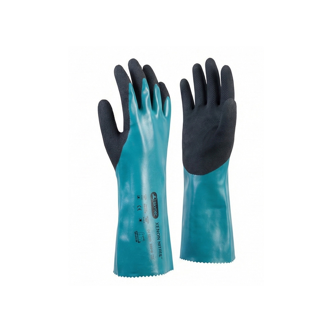 - طراحی ارگونومیک و راحتی: برخلاف دستکشهای شیمیایی سنتی که دست را خسته میکنند، Skytec Xenon دارای آستری نرم است که تعریق را کاهش داده و راحتی استفاده طولانیمدت را فراهم میکند.